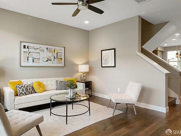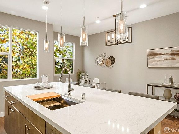 Spread across 3 floors, this 3 bed/3.5 bath condo feels like a single-family residence. Built in just 2017, the home features a beautiful kitchen with stainless steel appliances, a plethora of storage, and a large island with built in sink. Perfect for entertaining, the open concept floor plan flows seamlessly from the kitchen to living area, and out onto a private balcony. The bedrooms are set away from the entertaining area creating a comfortable separation between living and socializing areas. With 2 bedrooms on the top floor and 1 bedroom on the lower floor, this home offers ample living flexibility. Live upstairs and use the bottom floor with ensuite bathroom as a guest room, office, play area, or a master bedroom. Upstairs you'll find a large primary bedroom with ensuite bathroom. Boasting a dual vanity sink and walk in shower with tiled bench, this master bath creates the perfect retreat. A second bedroom with ensuite shower over tub combo and laundry closet complete the top floor. The home is equipped with an EV charging hookup, dual pane windows, recessed lighting, and keyless entry. Easy access to freeways and within close proximity to West Oakland BART station. Community amenities include a dog park, bocce ball court, ground maintenance, and low HOAs