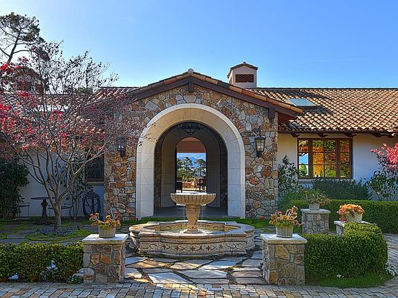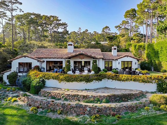 Located a few short blocks to the Lodge and just around the corner from "The Hay" golf course this impeccably designed and constructed home offers a perfect combination of the Pebble Beach lifestyle with location and views. Sited atop a gently upward sloping 1.25 acre parcel, generous and mesmerizing views are captured of the 6th and 7th at Pebble Beach Golf Links, Carmel Beach, Point Lobos and the mountains beyond. A large wrought iron gate with a sweeping stone paved driveway leads to a spacious motor court and then to your views once inside. Thoughtful in design, the essence of indoor/outdoor living is captured with open spacious living areas with high vaulted ceilings, large sliding doors to a grand stone patio. Featuring 5 suites with one as a guest quarters, library and family/game room finished with warm wood floors, fine stone counters and thick plastered walls. Close to it all, this unique estate offers views, a large car barn, location and quality hard to find.