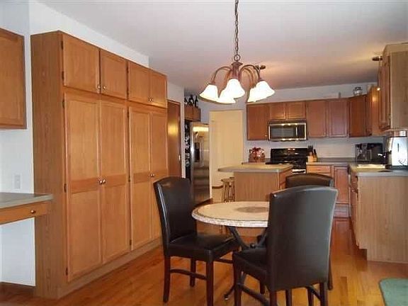 Nearly new, light neutral decor, two story entry, hardwood floors in kitchen and entry, first floor laundry, tons of cabinets in kitchen, fam room w/fireplace. Professionally finished basement with drywall ceiling and walls, carpet, and separate storage room. Large deck and nicely landscaped wooded lot. Transferred owner says come take a look - you'll like what you see!