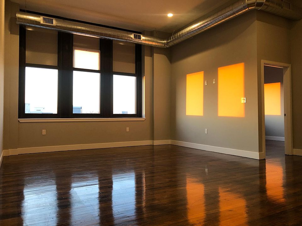 Gated outdoor spaceLarge furnished wood rooftopAfternoon sunlightCenter city viewSuper high ceilingsTons of natural lightLarge windows
