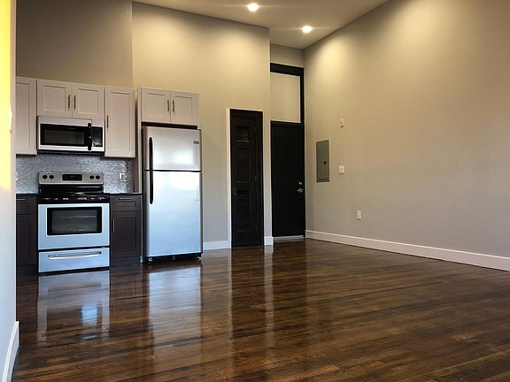 The unit features hardwood floors throughout, new kitchen appliances, Central A/C and heat. Large windows, which bring tons of natural light. Super high ceilings. Big size of the living room and the bedroom.