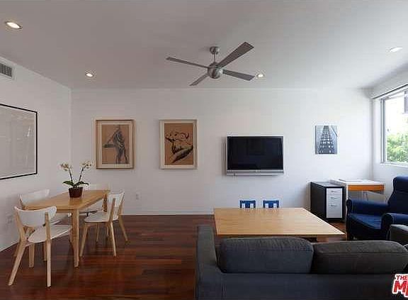 Private architectural unit in a triplex built in 2011! You'll find your single-story, private entrance, 2 BEDROOM, 2 BATHROOM with high-end finishes and dramatic spaces. Incredible natural light radiates through tons of large windows. The kitchen has an open floor plan to the living and dining rooms. Large, PRIVATE second-story roof deck and private enclosed side yard. Central air conditioning and heating, dishwasher, garbage disposal, washer/dryer, refrigerator, Brazilian Walnut hardwood floors, ceiling fan, gas range/oven, hood fan. Unit INCLUDES 2 cars off street parking spaces. Owner pays water & trash. Tenant pays gas & electric. Vons Supermarket right down the street. Very convenient. Owner pays water and trash, tenant pays all other utilities. 2 car parking included. 1 year minimum lease