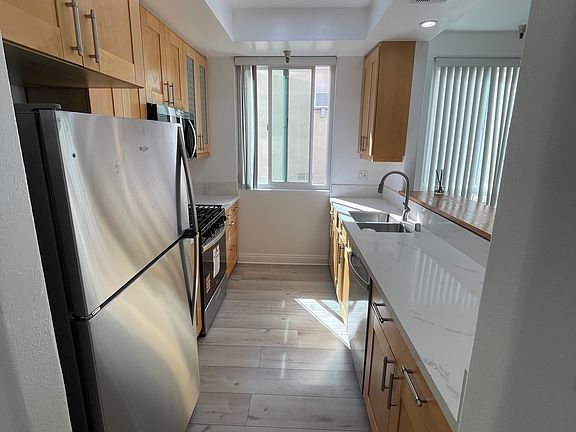 Freshly updated apartment in the heart of Pico-Robertson! This bright and spacious 2-bedroom, 2-bath unit features new vinyl plank flooring throughout, tiled bathrooms, freshly painted walls, and brand new kitchen appliances including an oven/stove, microwave, refrigerator, and dishwasher.