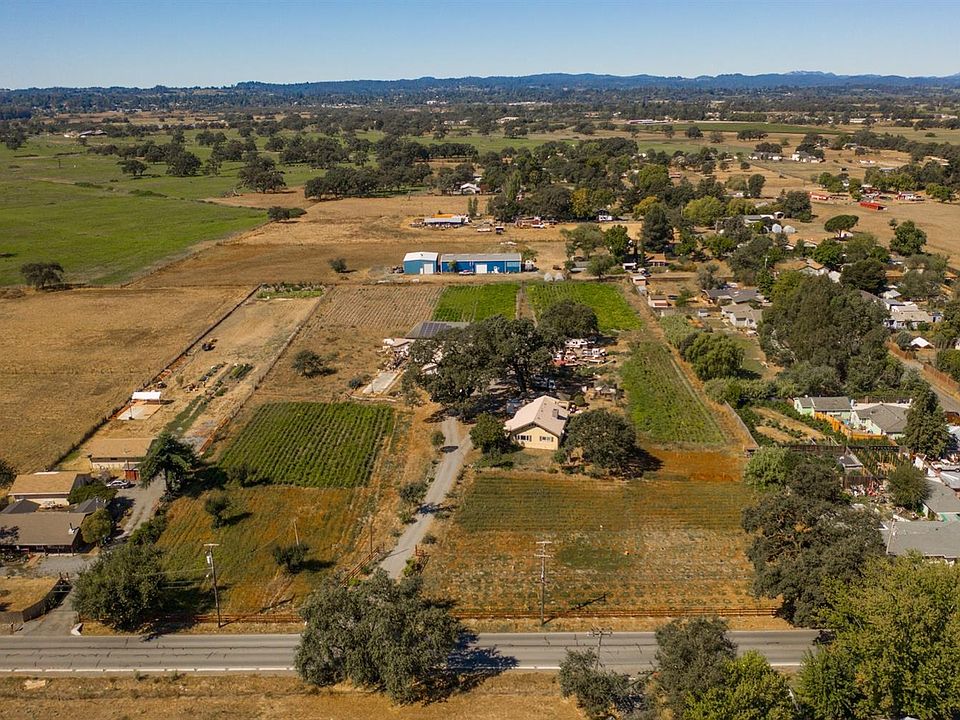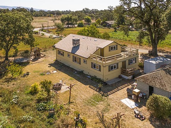 Charming farmhouse located on a 5.55 acres. This tastefully updated home lives like a 4 bedroom, 3 bath with the master on the main level. Upstairs are two cozy loft bedrooms, with easy access to the rooftop deck. Enjoy the views of the property, the majestic mature oak trees, and the surrounding rolling hills. Upgrades include new laminate hardwood flooring, carpet and paint. This flat usable property offers a detached garage, carport w/ storage, and a large work building w/approx. 6000 +/- sqft, of endless possibilities. Additional workshop, RV/Boat or equipment storage. Part of property currently leased for storage and land use. Country property but still conveniently close to shopping, downtown Santa Rosa and Sebastopol.