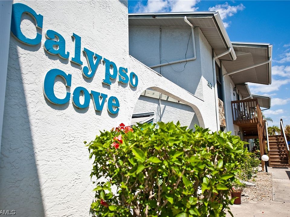 LOCATION, LOCATION, LOCATION with a short stroll to all conveniences of bank, pharmacy, and grocery! THIS GULF ACCESS End Unit Condo with only 1 -10.25' bridge IS A MUST-SEE! Meticulously maintained 2 bed 2 bath with a brand-new roof and dock space available for your boat! You're going to love the family-feel from all the neighbors! This home has recently been painted and has a light bright feel with vaulted ceilings. You will enjoy the large eat-in kitchen overlooking the living area with a breakfast bar. The large master bedroom offers sliders out to the lanai, a walk-in closet, and a separate WC with a shower. The 2nd bedroom is huge with an extremely large closet and conveniently connects to the main bath. Storm protection includes impact windows and roll-down shutters on the lanai. Your wallet is going to appreciate the energy-efficient 16-seer AC unit that is only a few years old and the water heater that is also newer! The large screened and tiled lanai overlooks a view of the canal/dock and has a separate laundry/storage room and provides rear access via a circular staircase to the back canal/dock area! Schedule your appointment today to feel right at home here!