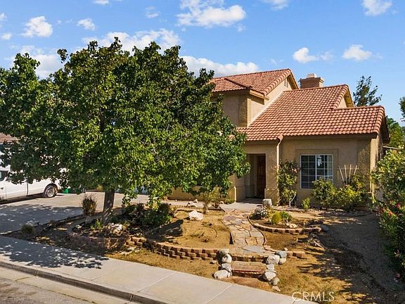 Beautifully upgraded West side Palmdale home nestled below the foothills with a beautiful view of the valley from a custom deck off the master bedroom. Located on a quiet cull de sac, this beautiful home is move-in ready, high ceiling, new paint, new flooring, new molding and awaiting your new owner. This home features include a formal living and formal dining room, a family room with a fireplace, and a custom surround. Beautiful kitchen with newer cabinets, granite counters, and stainless steel appliances, a large living room with a high ceiling that has direct access to a downstair bathroom, and an indoor laundry room. Beautifull stair to Upstairs takes you to 3 nice-sized bedrooms and a full guest bath. The Master bedroom has a walk-in closet and a French door to a custom-built balcony to take a breathless view of the city lights and mountains. The Master bath is completely remodeled with an elegant dual vanity, garden tub, and stand-alone shower with exquisite tile on floors and splash. The front yard has Zeroscape, and the backyard is a paradise with a beautiful lawn, pond, fountain, gardens, gaze and great location in vest Palmdale.