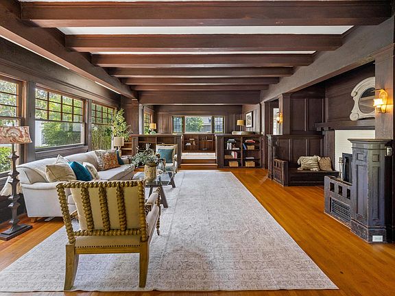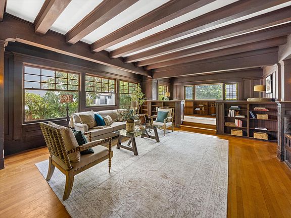 An iconic residence in one of Santa Barbara's most sought-after neighborhoods! This 1909 Prairie-style home offers rare historic character and exceptional versatility. Located directly across from Alice Keck Park in the Upper East and designated a Structure of Merit by the City, it spans over 3000 sq ft and can function as a 3BD/2.5BA single-family home with flex room and office/library, or as a legal duplex with a 2BD/1.5BA plus office/library lower unit and a 1BD/1BA upper unit. Rich in period detail, it features two fireplaces, beamed ceilings, paneled walls, and original hardwood floors. The detached Carriage House, now an artist's studio with bathroom, offers ADU potential and is just under 1200 sq ft. Moments from downtown and vibrant State Street with shops, dining, and theaters.