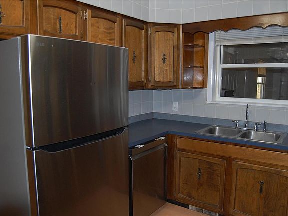 3 bedroom, 1 3/4 bath all electric home with a metal roof has a 2 car attached garage in back with a no step entry. Chain link fence in the backyard