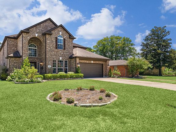 Centrally situated in the coveted east side of Oak Forest, this stunning brick traditional home presents an open-concept floorplan featuring 5 bedrooms, 3.1 bathrooms, a private home office, a theatre room, a game room, as well as an expansive living room overlooking the outdoor patio and backyard. The interior boasts impressive architectural finishes throughout, including wide-span arches and a double-height coffered ceiling. A key highlight of this home is the open second-level corridor, full of natural light and a spacious layout creating clever visual connections between the common areas of the home. Beautiful curb appeal is highlighted with a double private driveway, mature shrubs and flowerbeds maintained by front and back irrigation systems. Numerous upgrades throughout including LG Chem solar panels and mosquito misting system. All appliances stay! Minutes from bike trails and recreational parks. No flooding history. Zoned to and only steps away from Oak Forest Elementary.