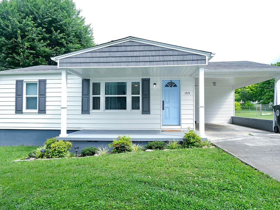 Come tour this adorable and tastefully updated ranch in Fairview Hills with beautiful updated hardwood flooring throughout, and ceramic tile flooring in bathrooms. Home offers 3 bedrooms and 2 remodeled full bathrooms, with main bedroom ensuite and oversized walk-in closet. Recently remodeled large eat-in kitchen featuring tons of cabinets, updated stainless steel appliances (2021), LED recessed lighting and custom tile backspash, with plenty of cabinets and counter space and natural light. Off of the kitchen is a large laundry room, with room for pantry storage.  Sliders open to a covered flagstone patio where you can enjoy the level, fenced back yard, complete with large storage building/workshop that has electrical service. The front of the home boasts a welcoming covered front porch, and plenty of parking in the driveway and attached carport, with carport entry into the home's graceful foyer.  Other updates include newer vinyl tilt windows throughout.  If you've been waiting for an updated, move-in ready home with a fenced yard and no carpeting, in a quiet neighborhood convenient to shopping, dining, parks and schools, this one is a must-see before it gets snapped up!