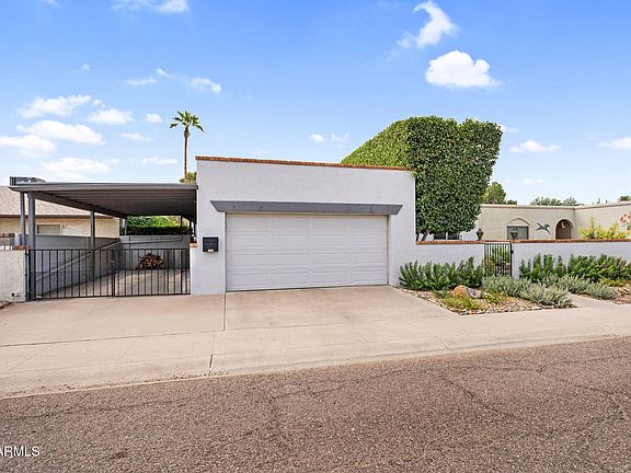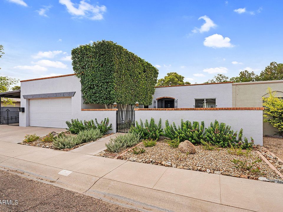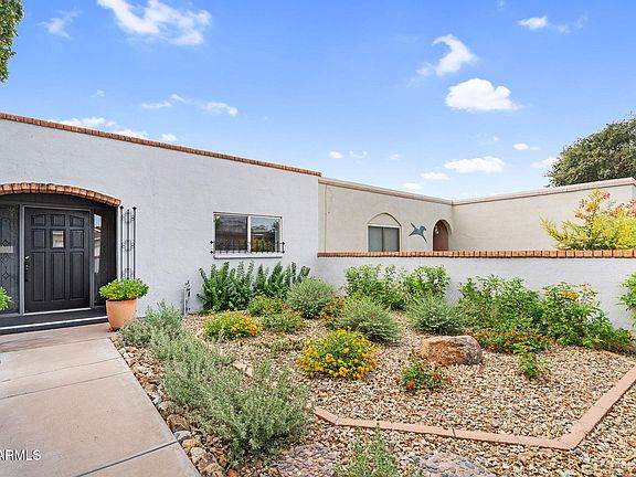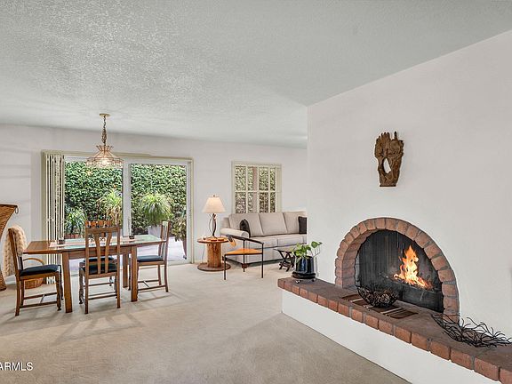 Welcome to this charming North Central Phoenix duplex-style home with nearly 1,600 sq ft and no HOA. A split floor plan places the spacious primary suite apart from guest bedrooms, offering privacy and flexibility. The living room features a cozy fireplace, while the kitchen includes granite countertops, gas cooking, a walk-in pantry, and Saltillo tile floors. Recent updates include a new roof (2024) and freshly painted kitchen cabinets (2025). Outside, enjoy a large navel orange tree, lemon tree, covered patio, and side yard. The former in-ground pool was covered with decking by Retire My Pool in 2024, but remains for easy reconversion by new owner. Quiet street, lush landscaping, and ample storage make this a rare find ready for your finishing touches.