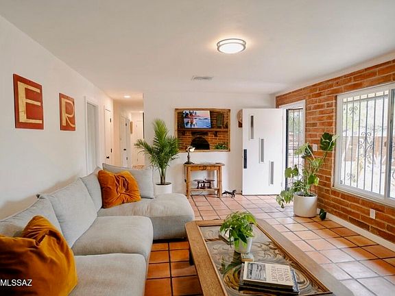 Discover this beautifully renovated 3BD, 2BA, 1,235 sq ft home minutes from Downtown Tucson, U of A, Pima College & I-10, right across from El Rio Golf Course. Thoughtfully updated by honors with remodeled kitchen/baths, raised hallway ceiling, metal roof, new HVAC, spray-foamed attic & Lennox mini split in garage. Outdoor oasis features low maintenance landscaping, metal planters, privacy fence, BBQ area, covered porch, cold plunge & fountain. Ample parking with 20'x14' metal carport & private storage for all kind of collectors. 3-20ft shipping containers & select furniture are negotiable and may convey via separate bill of sale. Room to add guest house, office, or MIL suite. This home is a must see with endless possibilities. Move in ready or ideal rental investment this gem won't last.