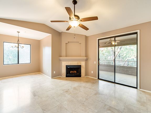 2 bed, 2 bath condo with impressive features! This home features stunning travertine tile in all the right places and adds a spark to your evenings by the fireplace. In both of the bedrooms, there is dark wood flooring; which is low maintenance and enhances the living space! The kitchen has an abundant amount of natural light, great cabinet space, and durable countertops. The covered patio is large and spacious; perfect to have your guests over for dinner! Don't miss this one. Schedule your showing today!