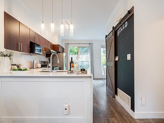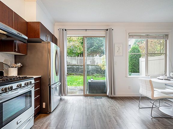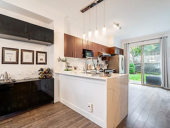 Large south-facing fenced yardOpen main floor planLaminate flooringModern kitchenNew quartz countersBreakfast barStainless steel appliances