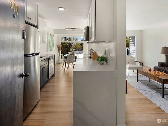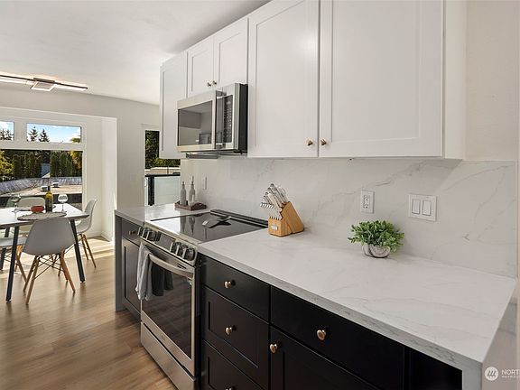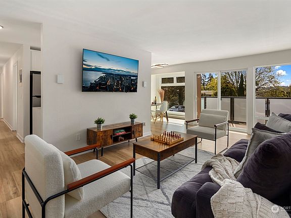 The crown jewel of the neighborhood has finally hit the market, come check it out before it's gone! Fully remodeled with west facing views grant this unit incredible light, sunset views, peace, and quiet AND its own parking spot! Get in now before prices skyrocket with all the improvements they are making to the complex like new hallways, new plumbing, new office! This move-in ready condo is the best value you'll find anywhere in the area, it comes with its own parking spot and incredible privacy. It's convenient location allows you to hop on either highway in a couple of minutes and you'll never run out of stores to go shopping with Southcenter Mal just a couple of minutes away as well. Enjoy!