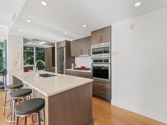 Miramar Village by BOSA – Sun-Drenched Elegance, this exquisite south-facing corner residence offers 1,310 sqft. of light-filled, modern living. Picture windows frame serene views of Miramar Plaza and Bryant Park's nature trail and enhance the open, airy layout. Featuring two spacious bedrooms on opposite sides for privacy and two full bathrooms, the home is ideal for family or guests. The gourmet kitchen, renovated in 2020, boasts custom cabinetry, high end appliances, a butler’s pantry, coffee bar and wine fridge, combining function with refined style. Relax on your private south-facing patio or step into the vibrant heart of uptown Sunny White Rock, just steps from fine dining, cafés, Thrifty Foods, boutique shops and Community Centre. Pets allowed, rentals with restrictions.