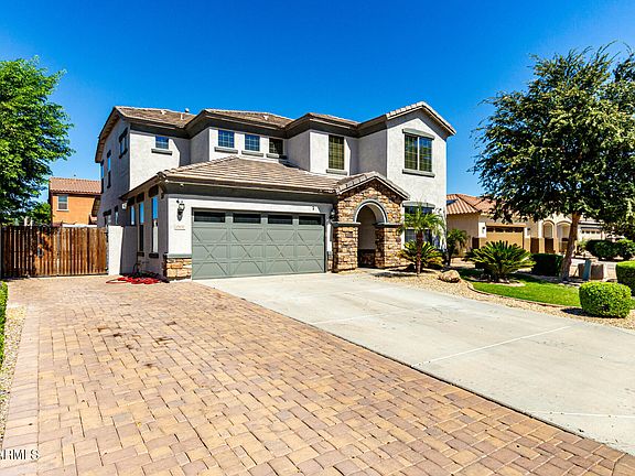Gorgeous Palm Valley community w/POOL! This is a beautifully upgraded 4 bedroom, 3 1/2 bathroom home with soaring high ceilings. This home offers a spacious and elevated feel from the moment you step inside. Highlights of the Chef Delight Kitchen offers an attractive expansive island and butler pantry with Gas Stainless Steel Appliances, Lots of Cabinet Space & Quartz-Granite Counter Tops. Spacious bedroom and full bathroom downstairs! Split loft area perfect for crafting or lounging. The backyard is low maintenance and ready for relaxing and entertaining under the covered patio with extended travertine decking around the pool. There is an RV Gate with paver walkway. The Interior and Exterior has been freshly Painted. Recently updated dual AC units. Storage sheds for all of your extras. The location is unbeatable close to top-rated schools, parks, and dining. Whether you're upsizing, relocating, or looking for the perfect family home, this one checks all the boxes.