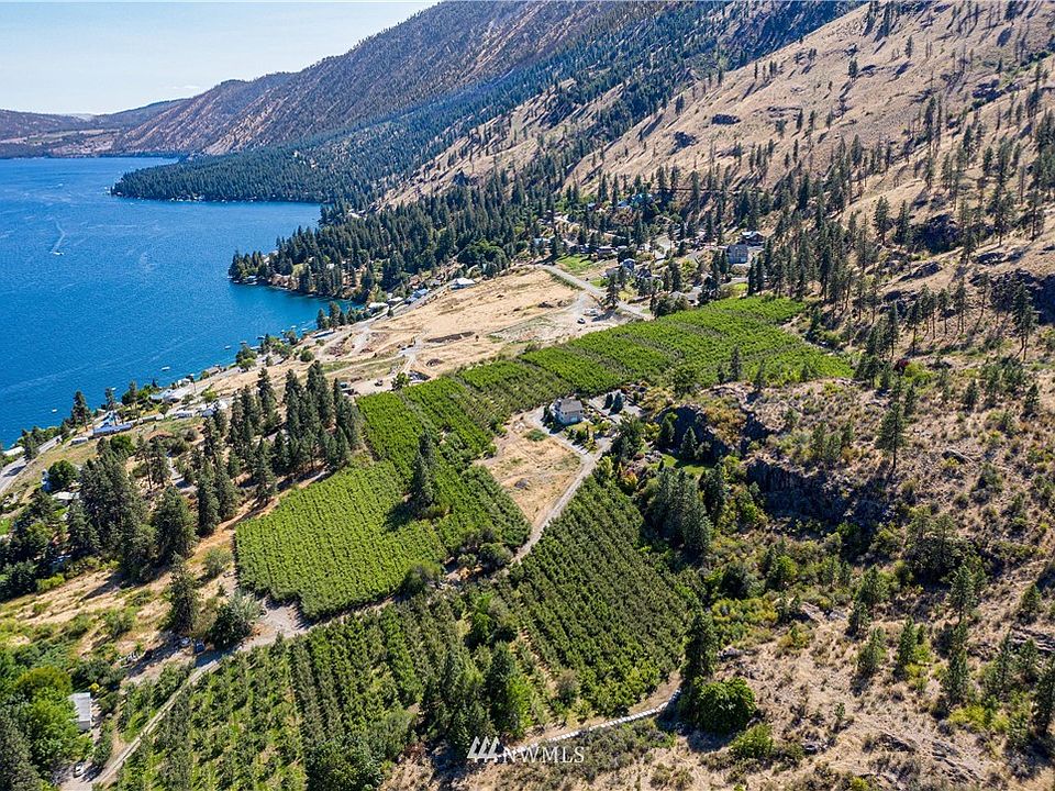 Organic Orchard 12 acres mix of pears/apples with Custom home is located on 38 acre property on S. Lakeshore Road, incredible 180 degree views of Lake Chelan. Fabulous home, designed with a great room is heart of home, daybed overlooking lake, Bookcases, Travertine tile, Vaulted ceilings, Hardwood floors, and Granite! Guest cottage, & 1994 Manufactured Home - 3 bedroom 2 bath property borders National Forest land. Create your private retreat or develop the 4 parcel into community development!