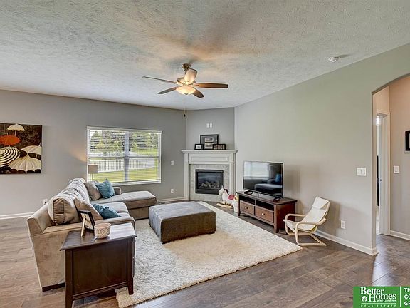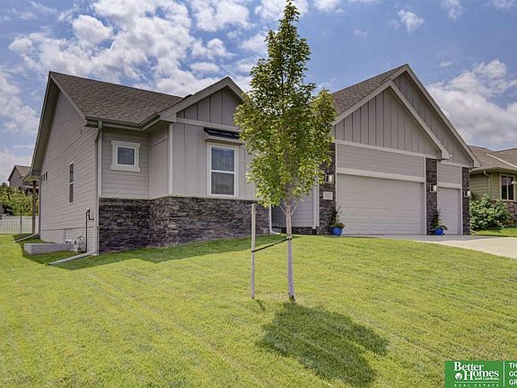 Ranch style home in beautiful Castle Creek subdivison. Alluring modern farmhouse exterior invites you in to a warm and stylish interior. You will find a spacious open concept floor plan with 4 bedrooms, 3 bathrooms, gorgeous wood floors, white trim and doors with sleek chrome hardware. Several adorning windows to let in lots of additional light throughout first floor. Kitchen comes with center island with seating, birch cabinets, quartz countertops, charming subway tile backsplash, under cabinet LED lighting and corner pantry. Lovely decorative mantle adorns the gas fireplace. Private ensuite has tray ceiling, walk-in closet, double sinks and tiled shower with bench. Main floor laundry room and drop zone with shelving. So much room in the fully finished lower level with 4th bedroom, 3/4 bath and additional storage. Large 3 car garage, sprinkler system. Covered south facing patio to relax on and enjoy summer evenings. Nearby Saddlebrook Community Center & Park and Standing Bear Lake.