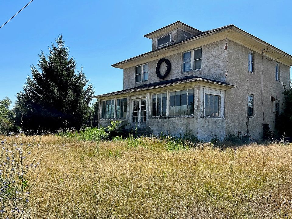 This is it. Seller has hit rock bottom price. Looking for a great project? A fabulous fixer? This could be your opportunity. 4 BR upstairs & 2 BA with a den/office/potential 5th BR on the main level. Huge LR & DR. Great kitchen with 2 separate pantry closets. Enclosed front porch (exterior Stairs need replacement). Currently part of a larger parcel. The house and shed will be subdivided to create a 1-acre parcel for you. Not for the faint of heart, but the possibilites are tremendous. Bring your imagination, a flashlight and your wallet. Sold strictly AS IS.