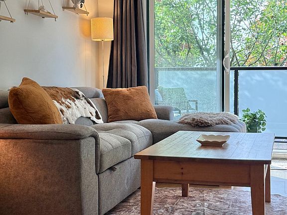 Treetop viewComfortable layoutCozy fireplaceHuge private balconyBeautiful sunsetsHandy storage room