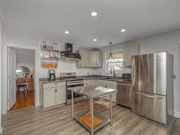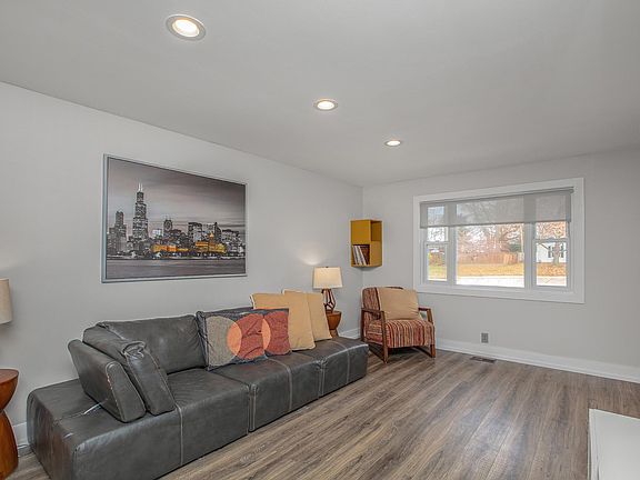 Wonderful South Side ranch with incredible updates including the kitchen and both baths. Interior is like new construction. Features large windows, open floorplan, fresh paint, can lighting, luxury vinyl plank, tile and hardwood flooring. Smartly designed kitchen with tile backsplash to the ceiling, stainless appliances including dishwasher, LG refrigerator, gas range and exhaust hood opens to dining area with chandelier and new sliding glass door with in-the-glass blinds. Two full baths with LED lit mirrors, new flooring, vanities and tub / shower surrounds. Three large bedrooms, primary with ceiling fan and built-in closet organizers. Main floor laundry room with storage possibilities and integrated pet door, unexpectedly large yard with landscaping, full fence, deck and attached garage. Conveniently located near shopping, restaurants with easy access to the By-Pass.