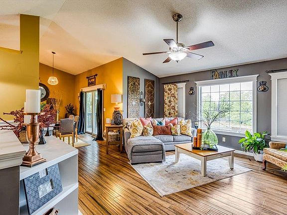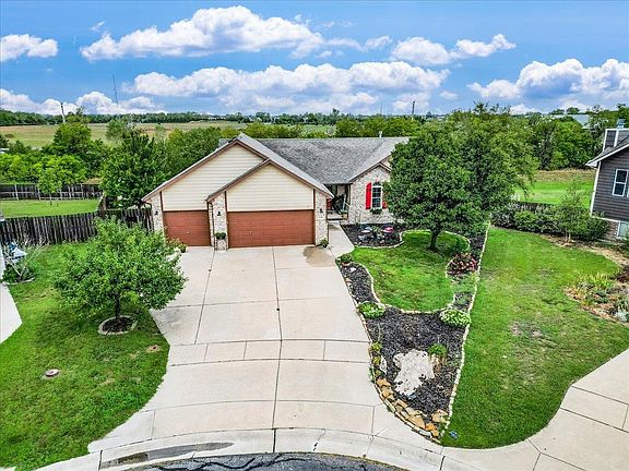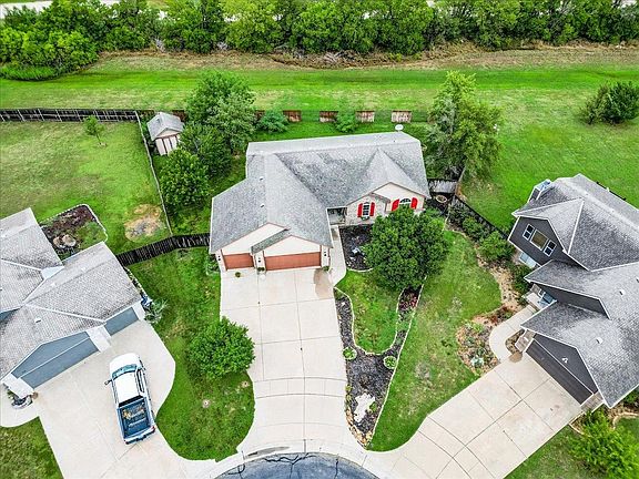 Extremely private ranch situated on the end of a cul-de-sac lot that backs up to Tanganyika Wildlife Park. Goddard Schools and a 4br and 3bath home with 3rd car garage!! Beautiful hardwood floors, open floor plan for easy entertaining, living room with vaulted ceiling, built-in shelves, vaulted ceiling, chandelier, and sliding glass door to the covered deck to make this summer's barbecues a breeze, and fabulous kitchen with Samsung appliances, island with breakfast bar and extra storage space, and pantry area with pull-out shelving. The convenient main floor laundry room is right off the kitchen and features extra cabinet space. Spend restful nights in this spacious main floor master suite with large window, vaulted ceiling with ceiling fan, and private bathroom with his and her sinks, whirlpool tub, vanity area, separate shower, linen cabinet, and walk-in closet with built-ins. The finished walkout basement is the perfect space to just hang out and features a large family room with viewout windows, wet bar, and recessed lighting, a game area with ceiling fan, can lights, and sliding glass door to the patio. This lower level also features 2 large bedrooms, a full bathroom, and ample storage space. You will love spending your time out in this serene backyard watching the Giraffes from Tanganyika while sitting on your covered deck or concrete patio area with fire pit. This park-like backyard also has a storage shed, wood and wrought-iron fencing, and great garden areas! No rear neighbors unless you count the Giraffes... Don't miss it!
