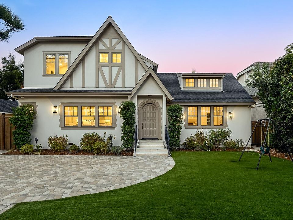 Classic Tudor architecture with modern designer style inside at the end of the lane with gated pedestrian and driveway entrances opening to a huge motor court for off street parking. Beautiful interiors feature hardwood floors throughout, vaulted ceilings, and sophisticated finishes. Arranged over graceful levels with 4 bedrooms, bonus office, 4.5 baths, and potential for a junior ADU on the lower level currently with family room, refreshment center, wine storage, and full bath. The stunning kitchen has custom cabinetry, a walnut island, and top-tier appliances and every bathroom is luxuriously appointed. The rear yard is designed for entertaining with a vast terrace, cabana with fire pit, and covered outdoor kitchen all on a double lot with seasonal creek. Excellent Burlingame schools. Minutes to Mills Peninsula Hospital and just one-half mile to Broadway.