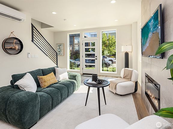 From Modern Homes, a new Ballard townhome community. Flooded with natural light, this end home boasts contemporary finishes & thoughtful design elements. Functional open concept living space, plus convenient powder room for guests. Second level offers flexibility with two bedrooms & full bath. Primary suite enjoys total privacy, occupying entire top floor. Expansive rooftop deck is a serene oasis perfect for a low maintenance outdoor escape. Situated moments from the heart of downtown Ballard: immerse yourself in the vibrant culture of local breweries, the Ballard Farmer's Market & the Shilshole waterfront. Convenience meets luxury with assigned off-street parking and nearby transit stops, ensuring effortless commuting.
