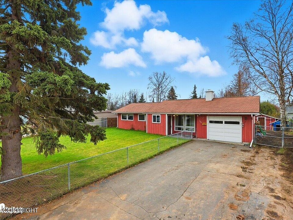 Ranch-style home on a fenced 1/4-acre lot featuring an oversized garage and a massive south-facing yard perfect for sunshine and outdoor enjoyment. . Plenty of parking for vehicles, trailers, or toys. Inside, enjoy a cozy living room and functional layout with great natural light. A wonderful blend of comfort, convenience, and outdoor space -- ready for you to make it your own!