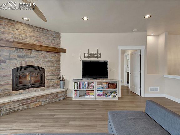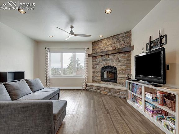 Welcome to this stunning, like-new patio home nestled in the picturesque beauty of Monument, Colorado. Built in 2019, this home is located in the highly desirable High Pines community, offering an ideal blend of modern luxury and scenic tranquility. Spanning over 3,300 total square feet, this home boasts ample space, including an extended two-car garage. Situated just minutes from I-25, you'll enjoy easy access to both Colorado Springs and Denver. Step inside, and you'll be greeted by an inviting ambiance filled with natural light, courtesy of the tall ceilings and beautiful, low-maintenance luxury vinyl flooring. The main level features the master bedroom, a luxurious primary suite, and a 2nd bedroom/office. With four bathrooms, including the primary suite's stunning 5-piece bathroom, granite countertops adorn each one, adding a touch of elegance throughout the home. The heart of this home lies in its chef's kitchen, complete with granite countertops, a double oven, pantry, and ample cabinet space. Adjacent to the kitchen, you'll find a charming composite deck, offering breathtaking views and providing the perfect setting for summer BBQs or enjoying your morning coffee. The spacious living room features a cozy wood-burning fireplace, making it an ideal spot for gathering with friends and family. Downstairs, the fully finished basement offers an additional bedroom, two bathrooms, and a private workshop area (separately ventilated) that can be converted into a bedroom or utilized for storage. The basement also features a walkout with a covered patio, perfect for outdoor entertaining. This home is truly a gem, combining exquisite finishes with a prime location. It's move-in ready and awaiting its new owners. Don't miss out on the opportunity to call this stunning residence your own. Schedule your showing today!