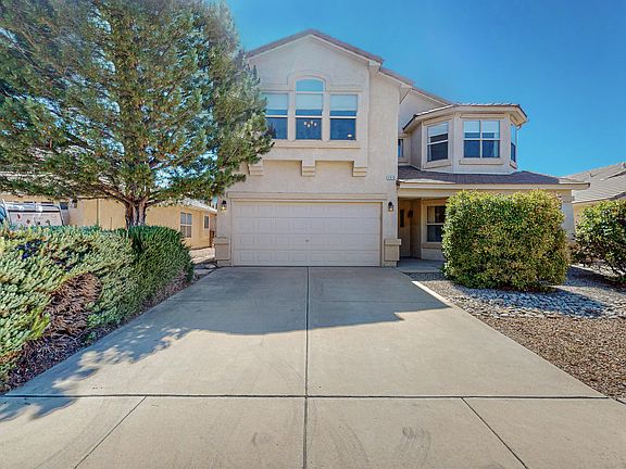 Conveniently located in Cabezon. Well maintained by original owner. 3 BED-possible 4 w/2.5 bath. Kitchen w/newer SS LG appliances, granite, tile backsplash, 42'' cabinets w/under cabinet lighting, pantry, island & wet bar. Entertaining is a breeze with 2 living areas - LR/DR combo & Family room w/gas FP. LVT ''wood'' style flooring on main level. Upstairs primary BED with w/sitting area, gas FP & east balcony w/view of Sandias. Updated primary bath w/laundry closet, dual vanities, walk in shower & walk in closet. 2 additional BD, full bath & possible 4th BED used as game room w/ 8' Brunswick pool table (included) for your enjoyment. Fully landscaped back yard, patio, Hot Springs spa. All appliances included. Owner is listing Broker
