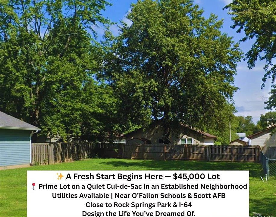 Here is your chance to build in an established neighborhood in OFallon Schools! Level lot with utilities available! County restrictions recorded and potential buyers can contact the city of O'Fallon about setbacks/zoning on restrictions. Close to shopping, interstate 64, and Scott AFB!