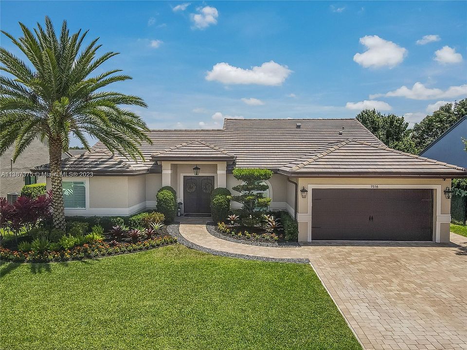 Marvelously Stylish and Upgraded Home with Heated Swimming Pool! Situated in a coveted community only ½ mile from excellent schools, this 4BR/3BA, 2,300+sqft property dazzles with lush tropical greenery and a custom paver driveway. Only updated by licensed contractors with appropriate permits, the interior features an open concept floorplan, plantation shutters, automatic blinds, and a gourmet kitchen with highly-rated GE Monogram appliances. Gather outdoors in the fenced-in and fully-turfed backyard, which has a heated PebbleTec pool with LED lights (controlled by app) and a covered lanai. Find tranquility in the primary bedroom with a California closet and chic en suite. Other features: insulated 2-car garage w/built-ins, newer roof (2018), near shops, and more! Call now for your tour!