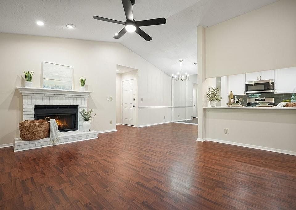 Don't miss ths move-in ready gem! Beautiful, renovated top floor condo is located in a desirable gated community featuring a pool, tennis courts and a dog park, and perfectly situated near restaurants, shopping, the CDC, Emory, and I-285. Step inside this freshly painted, spacious open floor plan where living, dining and kitchen flow seamlessly. Living area features vaulted ceiings, balcony with private view and a fireplace. Dining room with new light fixture features floor to ceiling wall of mirrors that creates space and reflects light. Kitchen has been updated from top to bottom with new floor to ceiling cabinets, quartz countertops and extended bar area, new backsplash, cool pendant lights and all new stainless steel appliances. Water heater is new too. New flooring, new cabinet, new sink, new faucet and new hardware in the bathroom. Primary bedroom has double closets and a ceiling fan, while the light filled secondary bedroom opens to the balcony overlooking a peaceful, green space and mature trees. Enjoy easy living with modern updates and resort style amenities in a location that truly has it all. Don't miss this move-in ready gem. Tuxworth Springs is FHA approved.