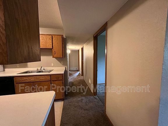 Campus Rivers apartments in Mankato. This single level unit features a galley kitchen, dining area and living room, as well as 4 bedrooms and 1 bathroom. Dishwasher is provided. Across the street from MSU Mankato Campus. Permit parking in the attached parking lot at no additional charge.