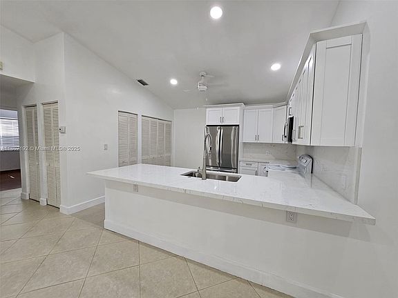Welcome home! Beautifully remodeled single-family home in Deerwood Estates! This corner unit home features 4 bedrooms, 2 bathroom, split bedroom plan, a garage, a private fenced yard, and a large screened in patio. The kitchen is brand new and completely remodeled. Guest parking is conveniently located next to the home. It's close to restaurants, shops, the highway, public transportation, and attractions like Zoo Miami. Rent includes landscaping. Don't miss out! Available October 1, 2025.