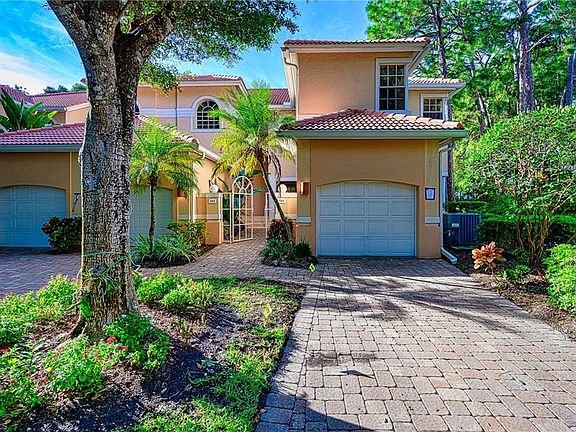Nestled in the quiet and beautifully maintained conclave of coach homes is this rarely available first floor Bay Forest home with attached 1 car garage. Welcome to 15161 Storrington Place in Bay Forest; perfect for the full time resident or snowbirds. With almost 1800 square feet (1779 sq. feet) of indoor living space, this home offers a perfectly designed open floor plan, featuring a granite kitchen, full dining room, spacious great room, large lanai, large master bedroom, 2nd bedroom, bath and den. The Great Room provides spacious room for entertaining featuring 4 large sliding doors to the large Lanai which is surrounded by beautiful plantings and creates an atmosphere of privacy and serenity. The Master Bedroom offers a spa like soaking tub, large shower area, double vanity sinks, private cabin and a large walk in closet with direct access to the spacious lanai. There is plenty of room in the second bedroom for guests with an additional bath. The Den is perfect for Flex space or a home office. The Split Bedroom design place the guest bedroom next to the Laundry and attached garage entrance. The garage leads to a fully pavered driveway and walkway to the property. Bay Forest residents enjoy the scenic fishing pier, large beautiful pool and clubhouse, bocce and tennis courts, bike paths and walking paths. Naples spectacular beaches, shopping and exquisite dining are only minutes away, making this incredible property a must see.