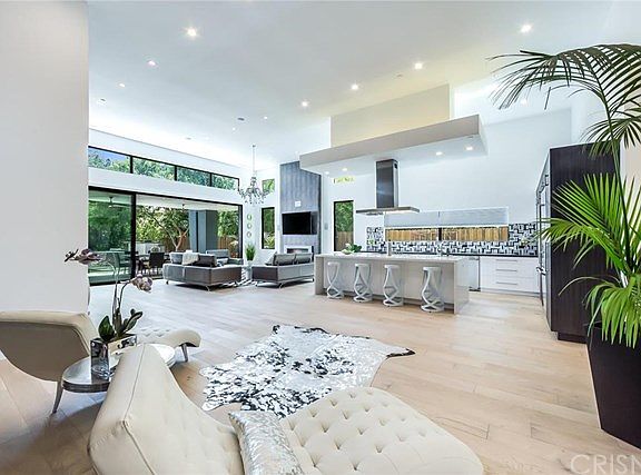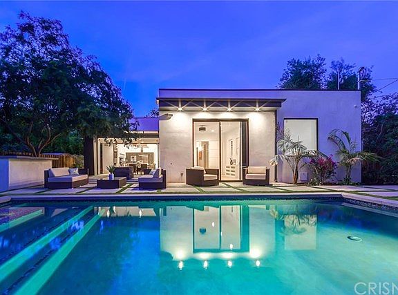 New Construction - Rare Single Story Contemporary family home offering 6 bedrooms! Located in quiet Sherman Oaks neighborhood on huge lot! Truly impressive finishes and touches can be found throughout this 6 + 5 ~ home offering 3,585 sq. ft. Skylights & abundance of windows flood entire home w/light. Boasting remarkable features, such as European bathroom vanities & brand new remote operated pool & spa. Living room exhibits sheer style with chic patterned accent walls, fireplace, 14 ft. ceilings & wall to wall sliding glass doors for an indoor/ outdoor flow. Kitchen offers SS appliances, wine fridge, Dune tile backsplash & large center island w/prep sink, storage & 5-burner electric stove & hood. Master bedroom features walk-in closet, sliding glass doors leading to backyard & private w/dual vanities, freestanding tub & shower with multiple settings. Entertainer?s backyard highlighted by covered patio w/2 stainless steel ceiling fans, fire pit & built-in BBQ. Other features include: Driveway leads to 2-car garage w/ interior access, Laundry room, surround sound & built-in speakers throughout, security cameras, French Oaks floors, LED recessed lighting & new landscaping throughout grounds. Easy access to the Westside & 101 & 405 fwy!