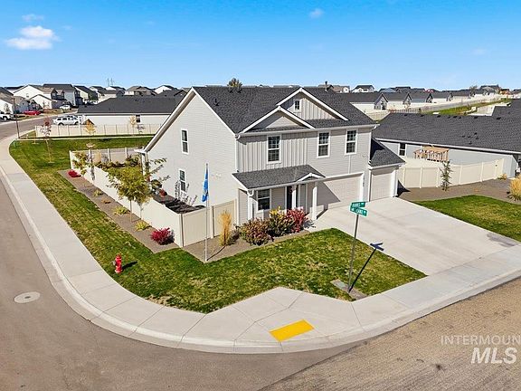 Impeccable home on a premier corner lot just minutes from Lake Lowell and some of Idaho’s finest wineries! This residence offers the perfect blend of elegance and comfort—better than new with thoughtful upgrades throughout. Enjoy beautifully designed landscaping, an expansive garden area, ample RV parking space, and a custom storage shed for all your outdoor essentials. The spacious covered patio creates an ideal setting for entertaining or quiet evenings outdoors. Inside, the main level showcases stylish, low-maintenance LVP flooring and a luxurious primary suite with a walk-in closet. Dual-zoned heating and cooling ensure year-round comfort. A true gem offering refined living in a highly desirable location!