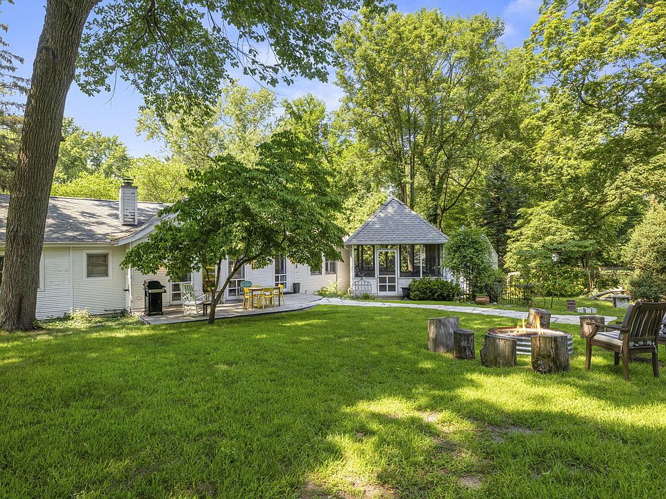 Step into a timeless Lake Michigan escape in the heart of historic Lakeside. This elevated 4-bedroom, 2-bath home blends bespoke craftsmanship with modern updates, preserving its rich hardwood floors, airy interiors, and two inviting screened porches—one perfectly positioned to capture the lake breeze. Located just one block from the beach, the property includes deeded access to the coveted Orchard Beach Association shoreline. Behind the home, a lush backyard offers a firepit, generous space for outdoor games, picnics, and gatherings, providing year-round enjoyment. Here, the pace of life feels a little easier—where quiet streets lead to sandy shores and time outdoors is a daily ritual. This property delivers the quintessential Lakeside experience.