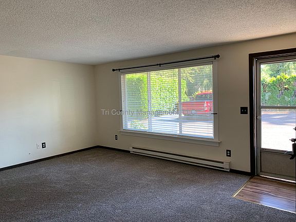 All applicants must meet screening requirement listed below. Private patio and yard with storage unit. Two parking spaces. 2 bedroom, 1 bathroom. Master bedroom has oversized 3 door closet. New carpet through out, tiled bathroom and shower surround, freshly painted. Small kitchen, good sized dining room and living room, washer and dryer hookup, dishwasher, baseboard heat in each room. Small back patio area and fenced shaded yard with storage shed. Great close in location close to restaurants, pubs, shopping, malls, swim center, parks, and easy I205 access. Renters insurance is required. Security deposit, cleaning deposit and application fee. Garbage, water and sewer included. Rental Requirements: 2X rent in monthly income Excellent rental history 1 year verifiable employment Good credit Disclosed criminal records are case by case Garbage, water and sewer included. NO pets over 14" or 20 lbs. Pet deposit required