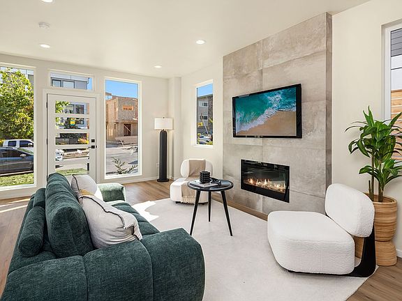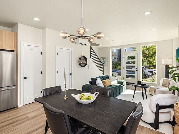 From Modern Homes, a new Ballard townhome community. Flooded with natural light, this end home boasts contemporary finishes & thoughtful design elements. Functional open concept living space, plus convenient powder room for guests. Second level offers flexibility with two bedrooms & full bath. Primary suite enjoys total privacy, occupying entire top floor. Expansive rooftop deck is a serene oasis