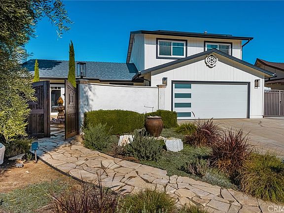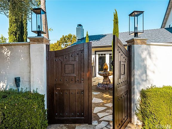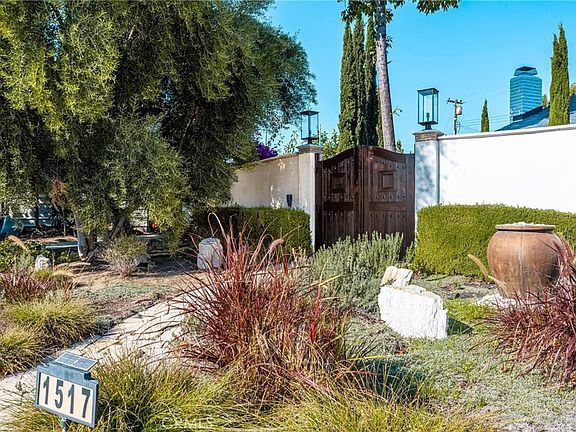 Welcome to this stunning European-inspired residence, offering timeless elegance and modern upgrades throughout. Situated on a large, beautifully landscaped lot, this approximately 2,100 sq. ft. home features 4 bedrooms and 3 bathrooms—designed for both comfort and sophistication. From the moment you arrive, you’ll be captivated by the home’s striking curb appeal, highlighted by a graceful S-shaped front wall with custom outward-swinging barn doors that create a grand and inviting entrance. Beyond the gates, lush greenery and vibrant gardens set the tone for the serene outdoor oasis that awaits. The property boasts a variety of fruit trees, including mature avocado, lemon, fig, mango, banana, and dragon fruit—creating a private garden paradise. The exterior is finished with durable 50-year Tex Cote paint, ensuring both beauty and long-lasting protection. Inside, you’ll find an inviting living area featuring gleaming wood flooring, dual-pane windows, and an elegant fireplace that anchors the space in warmth and style. The open layout flows seamlessly into a fully remodeled custom kitchen, complete with high-end finishes, modern appliances, and exquisite craftsmanship. Each remodeled bathroom reflects thoughtful design and luxurious comfort, evoking a spa-like ambiance. The primary suite is a tranquil retreat filled with natural light, luxurious flooring, and a beautifully updated en-suite bathroom. Additional bedrooms continue the theme of comfort and elegance—ideal for family, guests, or a home office. Step into the backyard and experience the ultimate entertainer’s paradise. This expansive outdoor space features a sparkling pool, multiple lounging and dining areas, and lush landscaping that creates a peaceful resort-style setting. Whether hosting weekend gatherings or enjoying quiet evenings under the stars, this backyard was made for unforgettable memories. Additional features include solar panels, ample parking, and meticulous landscaping that enhances the property’s European charm and sense of tranquility. This exceptional home seamlessly blends European character, modern luxury, and the best of Southern California outdoor living.