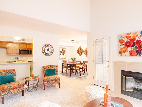 Fall in love with this warm and welcoming townhouse near Indian School/Tramway. Step inside to find stylish tile floors, fresh paint, and new carpet (7/25) that make this home feel fresh and comfortable. The spacious living room, complete with a cozy fireplace, opens to a private courtyard. The dining area offers plenty of room for gatherings, and the kitchen features abundant cabinets plus a small opening to the living room. The downstairs bedroom includes a full bath with a tub/shower combo. Upstairs, you'll find an exceptionally large bedroom with a full bath, and a lovely walk-out deck -- an ideal retreat at the end of the day. Recent updates include TPO roof installed 11/25 over deck and attached 2-car garage. new furnace and water heater (9/25). WHAT A GEM!!