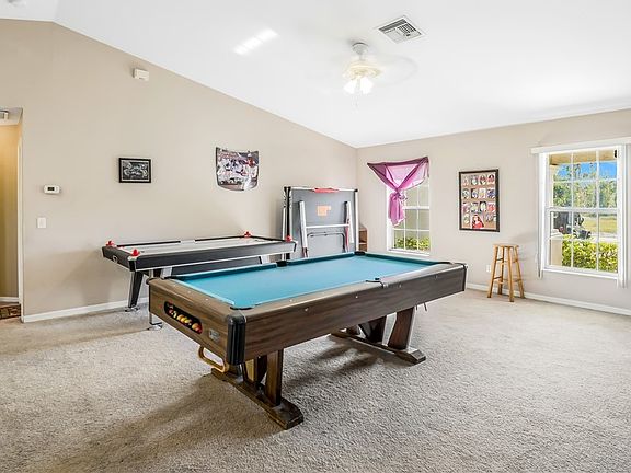 NEW ROOF! NEW Garage Door! This home features 3 bedrooms plus a den and 2 bathrooms. The home has a great room floor plan. Attached to the living room is the kitchen with lots of cabinet and counter space with the stainless steel fridge. The breakfast bar offers extra seating as it adjoins the living room. Just off the kitchen is the dining nook which has sliding glass doors that lead to the backyard of the home. The home has a split bedroom layout with a jack and jill style guest bedrooms. The owner's ensuite is equipped with a separate tub and shower. The lanai of the home is great for outdoor entertaining and provides privacy. Home is tucked in and surrounded by natural green area for extra privacy.