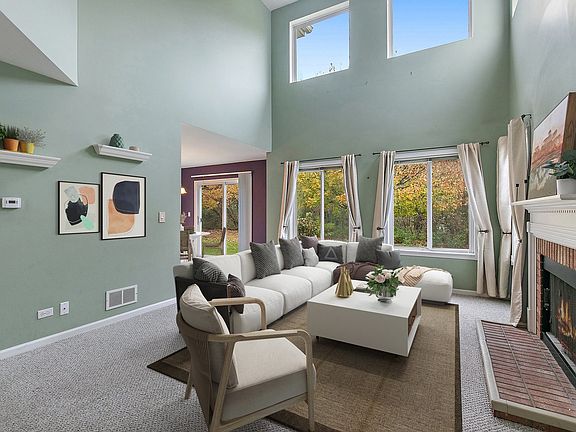 *****Highest and best is due by Tuesday, November 14th at 9 pm. You won't want to miss this 2 bedroom (plus a loft) end-unit townhome in desirable Villas of Gleneagle Farm. This home showcases a spacious living room with soaring ceilings, two stories of windows with great views of the outdoor space, and a cozy gas fireplace. The kitchen boasts stainless steel appliances, a peninsula that provides plenty of counterspace, pantry closet, and a dining area with slider to the patio. Upstairs includes a versatile loft, a master bedroom with en-suite access to the updated full bath, two additional bedrooms with ample closet space, and convenient second floor laundry. Put your finishing touches on the full basement to add even more living space. Outside, you can relax on the patio overlooking the picturesque yard that backs to trees and open space. Located near shopping, restaurants, Forest Preserve, parks, and easy interstate access. Great home in a great location!