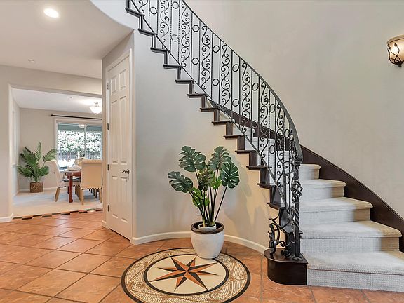 Beautifully maintained Sterling Preserve formal model home featuring a grand entrance, formal living and dining rooms. Spacious kitchen hosts a large breakfast nook, and an island with seating too. A gas range, stainless appliances, pantry, and solid granite counter tops. Downstairs has a bedroom and full bathroom. Separate laundry room. Upstairs has a built-in desk area at staircase landing, three additional bedrooms, and a second family room with a gas fireplace. The Primary bedroom suite features a private sitting area with a fireplace and double doors that lead to a balcony which has a lovely hillside and sunset view.