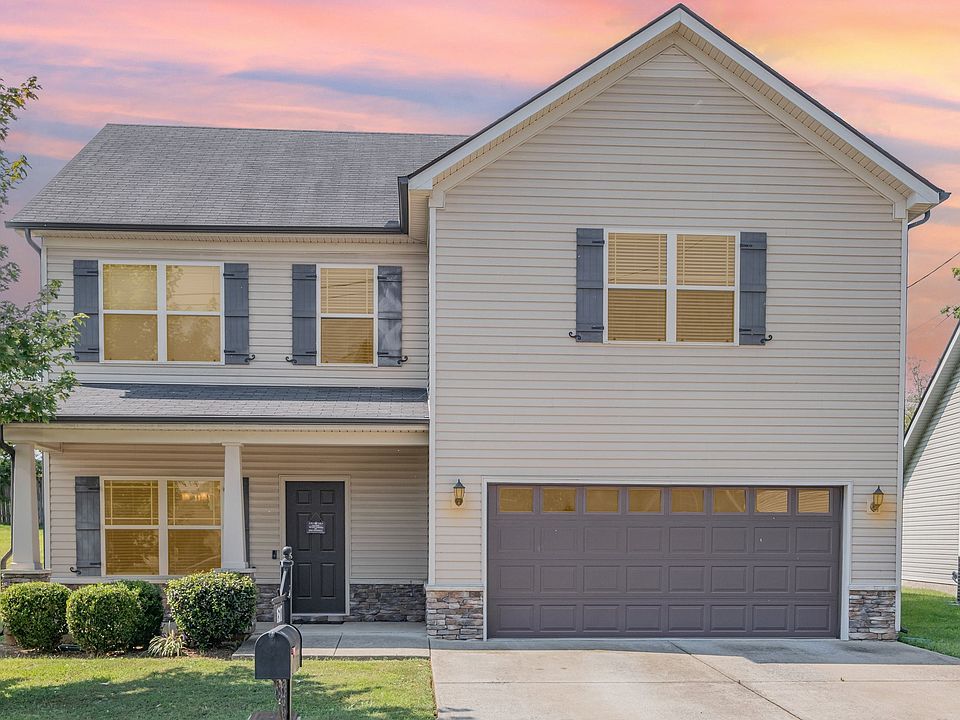 Welcome to your new home! This 3 bedroom, 2.5 bath home features a covered front porch and an open layout perfect for modern living. Recessed lighting brightens the main living area, which includes a large living room and a generous eat-in kitchen with an island that doubles as a breakfast bar, plus a pantry for extra storage.