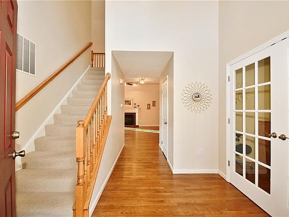 Sought after neighborhood with community park and sidewalk. Level front yard with level driveway for quick access to attached garage is a favorable feature. Welcome your guest or sip a cup of tea/coffee while reading your tablet at your lovely front porch. Impressive 2 story foyer. Living room/den with french doors to provide privacy. This truly open floor plan with newly updated upscale kitchen, dinning room with cathedral ceiling, beautiful hardwood floor and 2 story family room is amazing. The area can be used interchangeably according to your style. Gourmet kitchen with gorgeous cabinet, granite countertop, stainless appliances and lavish island making cooking and entertaining a joyful task. Convenient 1st floor laundry room. All bedrooms are very spacious. Amazing fully finished walkout basement with various section and a full bath is another wishful area. Possible one floor living or two separate quarters, highly desirable features for some. Fast route to I79/I279 and shopping.